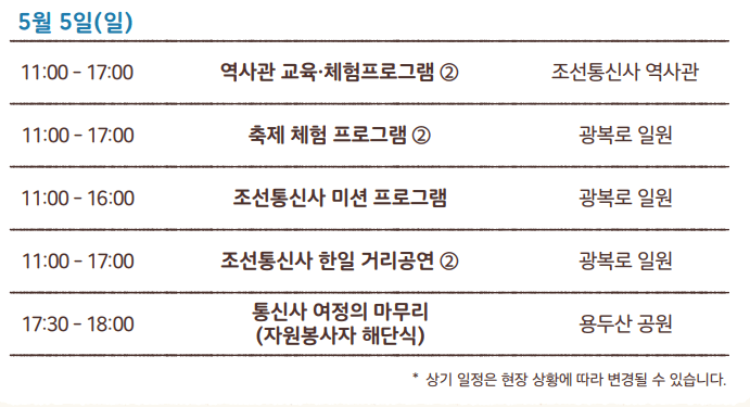 한일 양국의 평화를 위한 국가 사절단인 조선통신사의 행렬을 체험 및 볼 수 있음