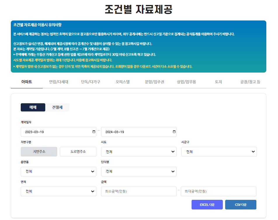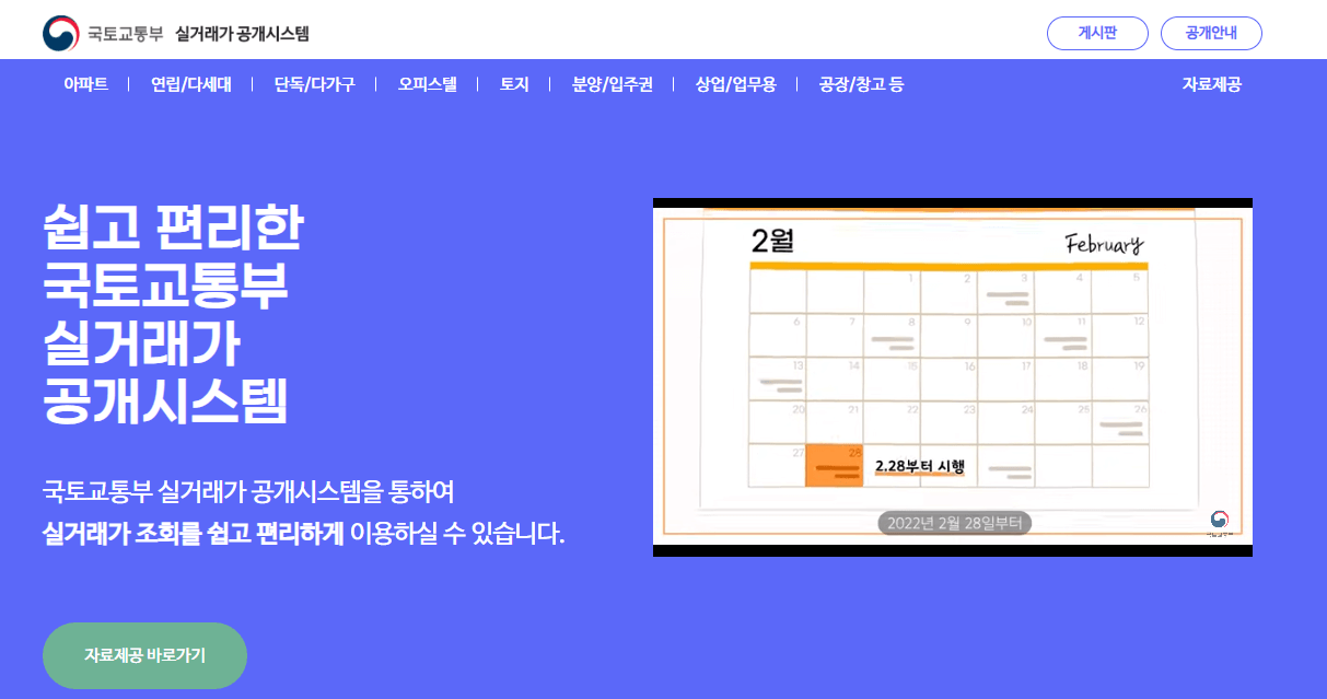 국토교통부 실거래가 홈페이지에서 확인이 가능합니다
