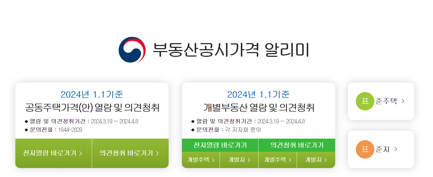 국토교통부 부동산공시가격알리미 사이트를 통해 확인이 가능합니다