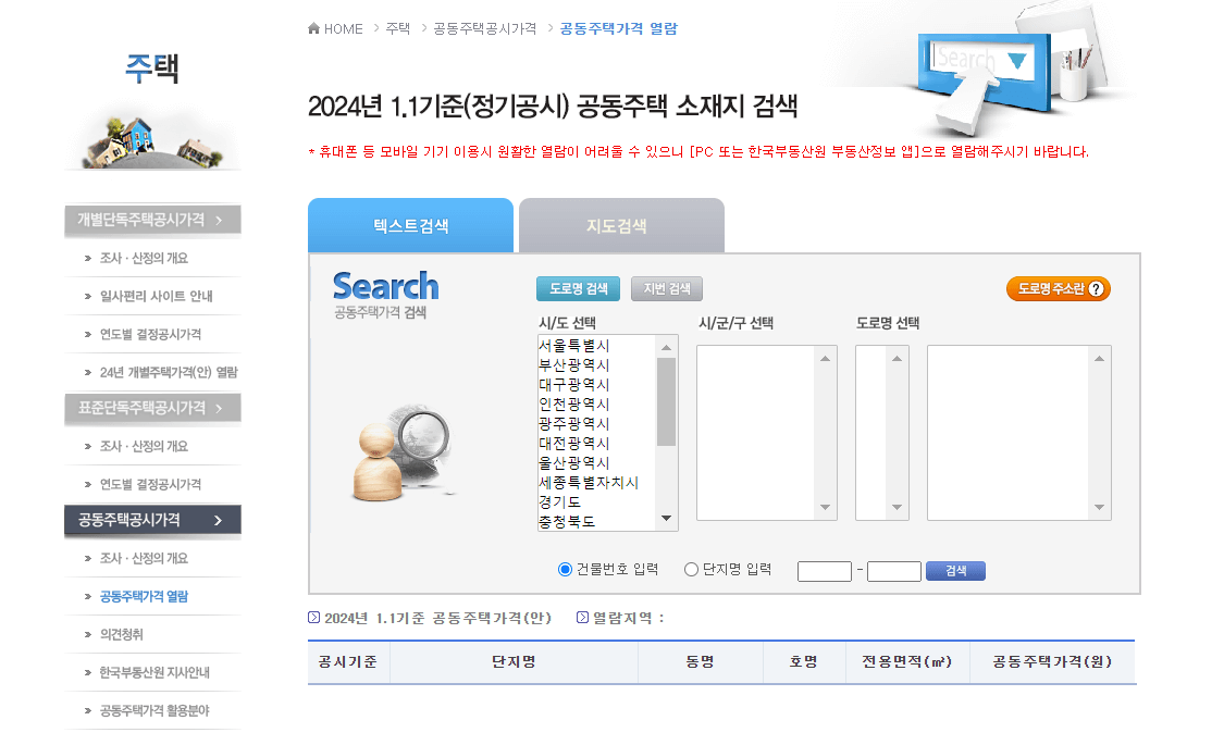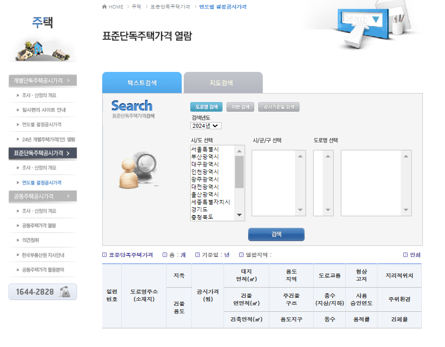 사이트에서 표준주택 버튼을 눌러서 들어가시면 됩니다