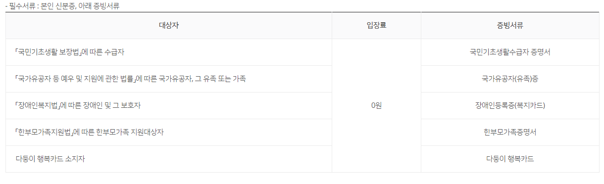 # 취약계층은 이용료가 무료