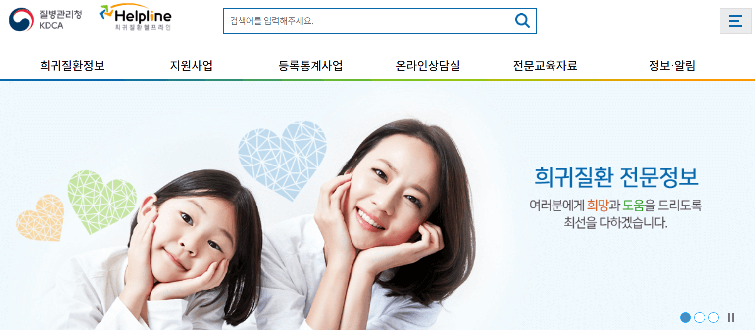 # 희귀질환 의료비지원제도는 희귀질환 헬프라인 사이트를 통해 확인가능합니다!