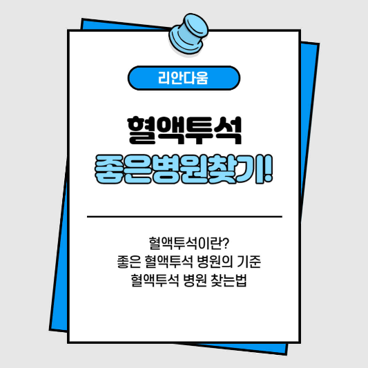 그렇기에 자신에게 잘 맞는 혈액투석 병원을 찾는 것이 매우 중요합니다