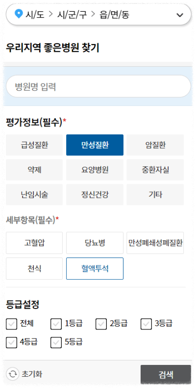 2. 만성질환 / 혈액투석 / 등급선택 검색하기