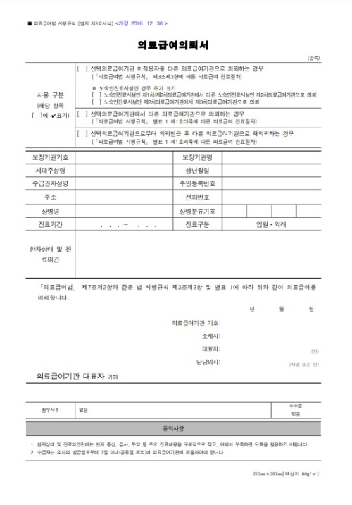 참고로 의료급여의뢰서는 진료의뢰서, 요양급여의뢰서, 소견서, 진단서 등으로 절대 대체 불가합니다!
