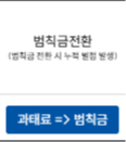 최근단속내역 > 과태료를 범칙금 전환하기 버튼누르기