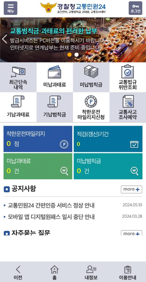 자동자 과태료는 교통민원 24 이파인 홈페이지와 이파인 어플로 쉽게 조회가능합니다!