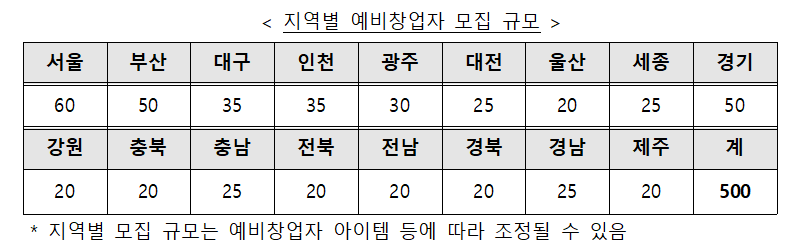 예비창업자 500명에게 창업상담 및 코칭, 다양한 프로그램과 함께 최대 4000만 원까지 지원해 준다고 합니다