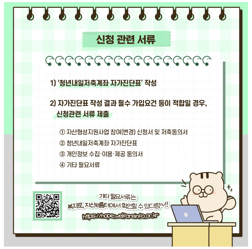 - 자가진단표 작성결과 가입요건이 충족하면 관련 서류 제출