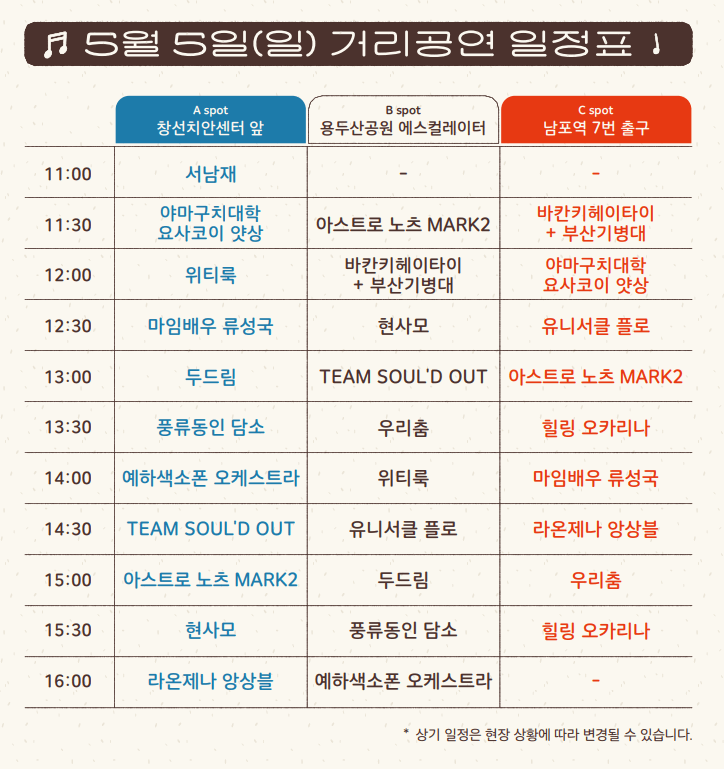 장소 : 송상현광장 (부산 부산진구 동성로 112번길 121-1) 및 부산시민공원 일원 (부산 부산진구 시민공원로 73)