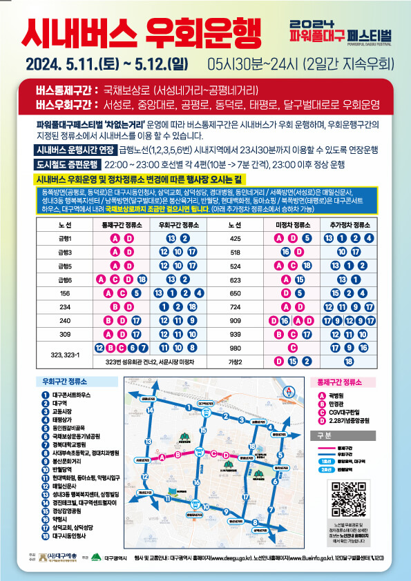 차 없는 거리로 교통통제 및 시내버스 우회운행으로 확인이 필요