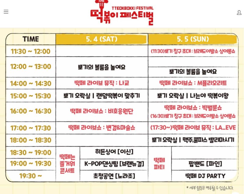 여러 브랜드의 떡볶이 체험부터 조선시대 궁중떡볶이 만들기, 뽀기 키즈놀이터 등 다양하게 맛보고 즐길 수 있습니다