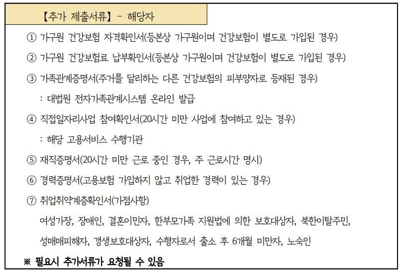 주민등록등본, 주민등록초본, 건강보험자격확인서, 건강보험납부확인서는 2024년 5월 16일 이후 발급된 서류여야 함